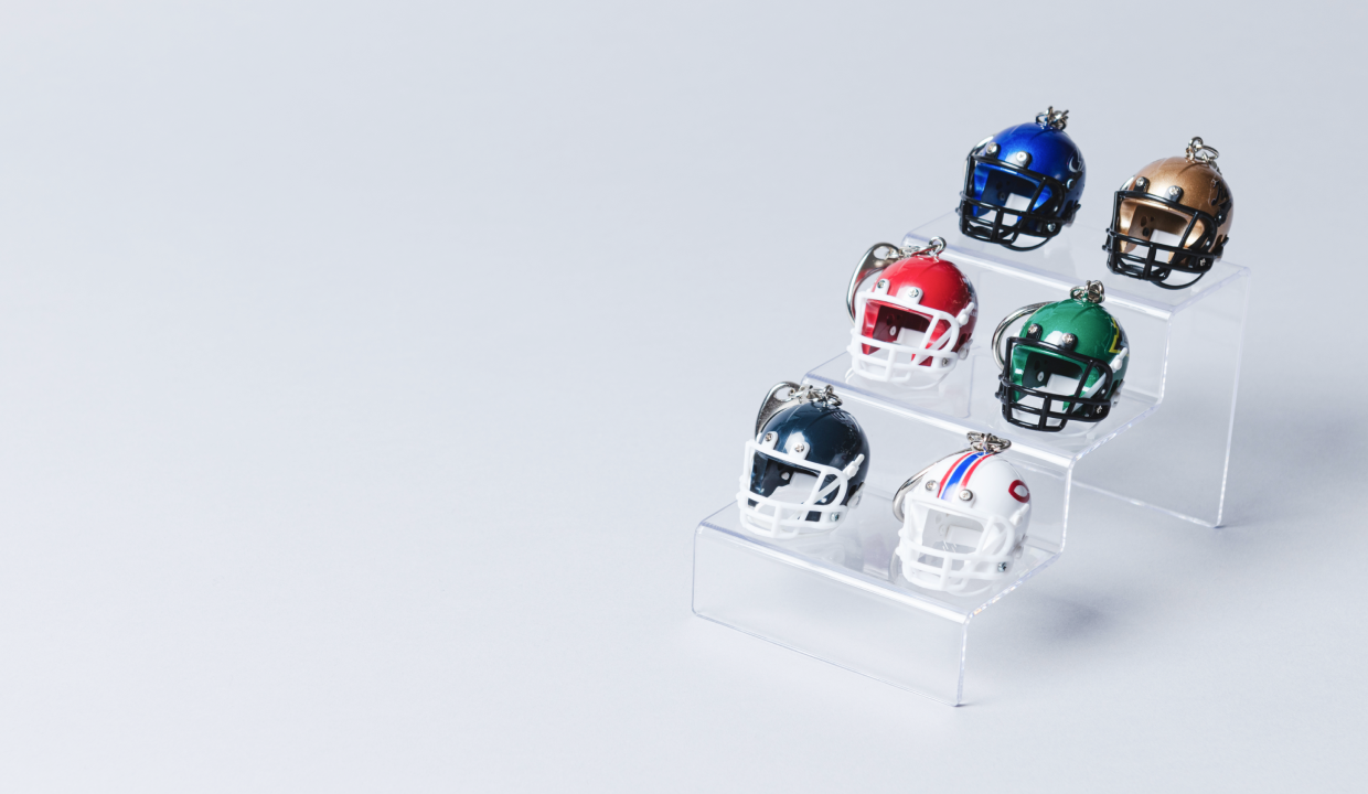 Made in 東大阪を掲げる ハリタ製の、高品質な ミニチームヘルメット・キーホルダー